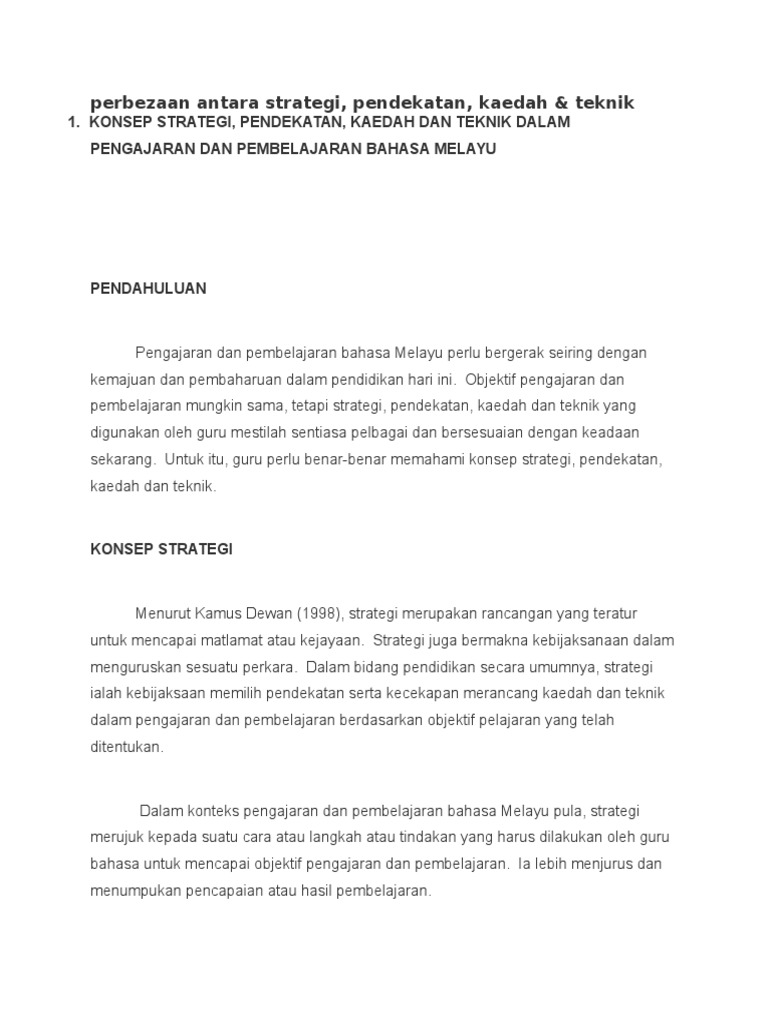 Konsep Strategi Pendekatan Kaedah Dan Teknik Dalam Pengajaran Dan Pembelajaran Pdp