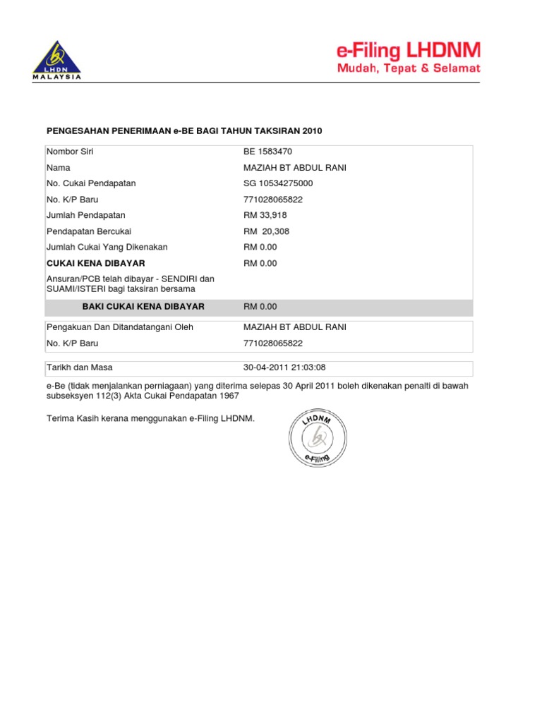 Kriteria Borang Nyata Cukai Pendapatan Bncp Tidak Lengkap