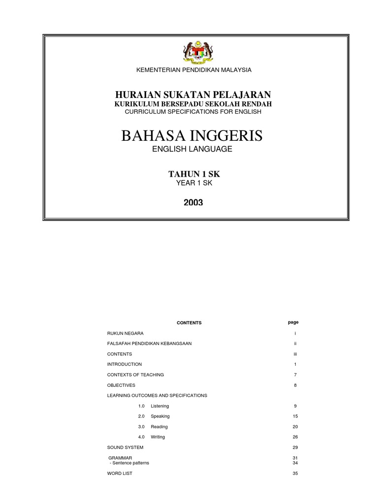 Huraian Sukatan Pelajaran Bahasa Inggeris Tahun 2 Educat Ota Tech