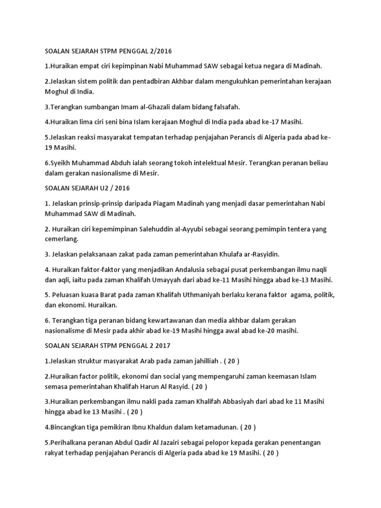 Soalan Stpm Sejarah