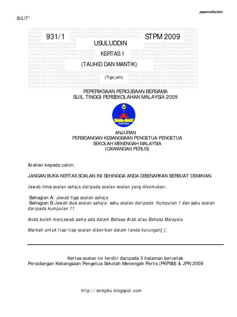 Stpm Trial 2009 Usuluddin Q A Perlis