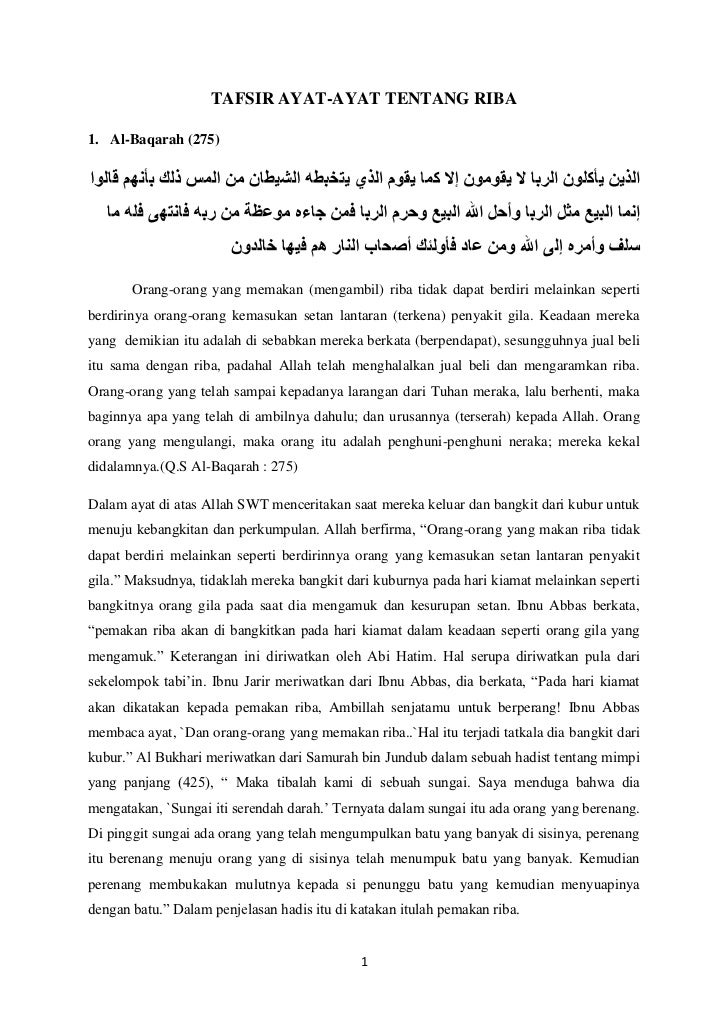 Tentang Riba Tafsir Ibnu Katsir Surat Al Baqarah Ayat 275 Properti Syari Ah