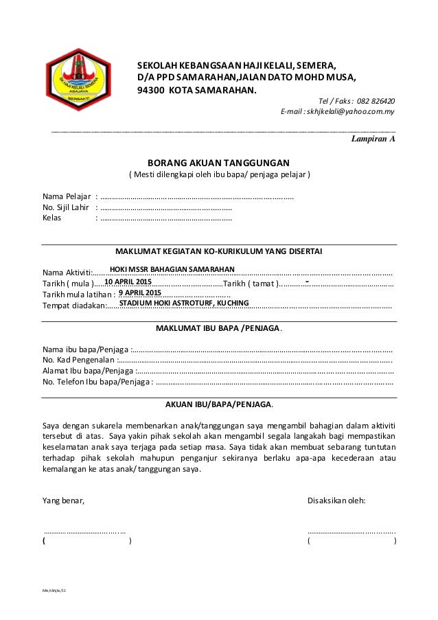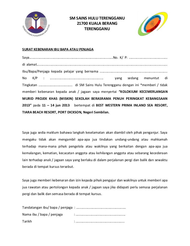 Surat Rasmi Kebenaran Ibu Bapa Surat Rasmi B