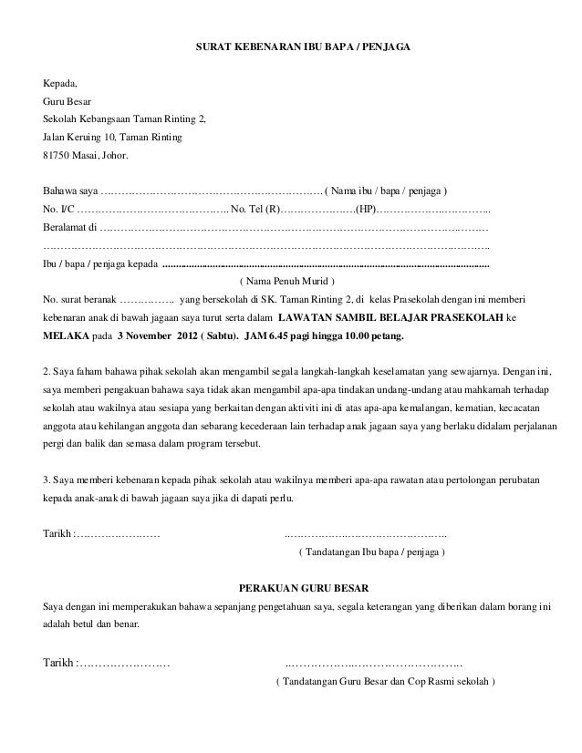 Doc Contoh Surat Kebenaran Ibu Bapa Dol Juan Academia Edu