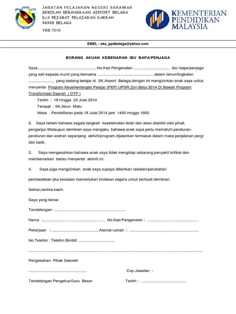 Doc Contoh Surat Kebenaran Ibu Bapa Dol Juan Academia Edu