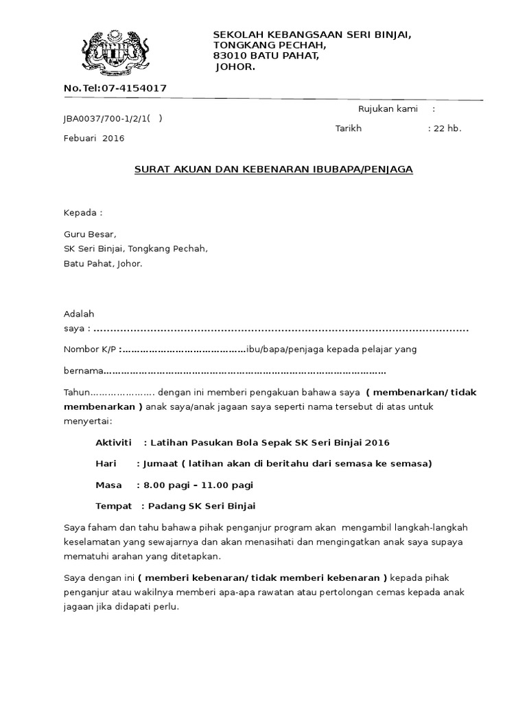Surat Kebenaran Ibu Bapa Pages 1 3 Text Version Anyflip