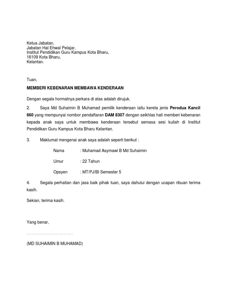 Surat Kebenaran Bawa Kenderaan Docx Document