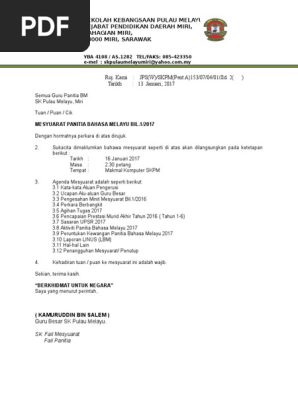 Doc Surat Panggilan Mesyuarat Panitia Bm Terkini Saripah Din Academia Edu