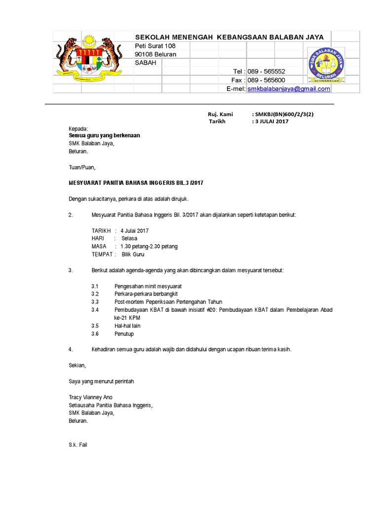 Surat Panggilan Mesyuarat Panitia Bahasa Inggeris Kali Ke 3 Copy