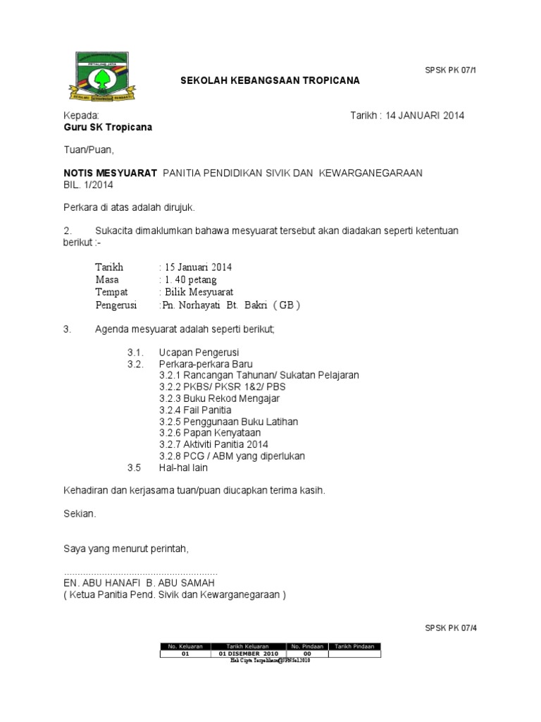 Surat Panggilan Mesyuarat Panitia Sains Pdf Pdf Document
