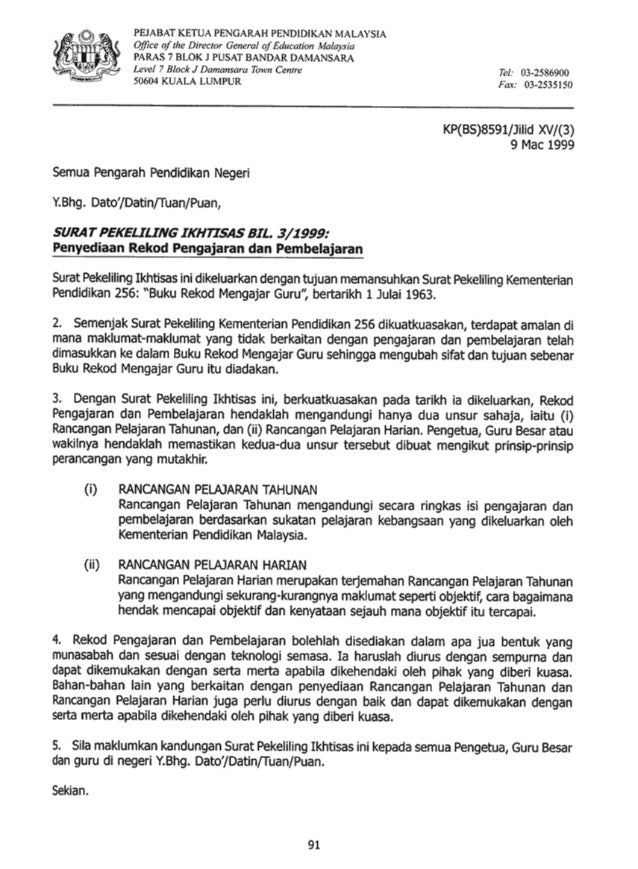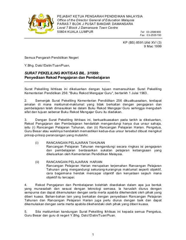 Surat Pekeliling Ikhtisas Bil 3 1999 Penyediaan Pekeliling Iktisas Bil Amalan Di Mana Maklumat Maklumat Yang Tidak Berkaitan Rancangan Pelajaran Tahunan Yang Munasabah Pdf Document