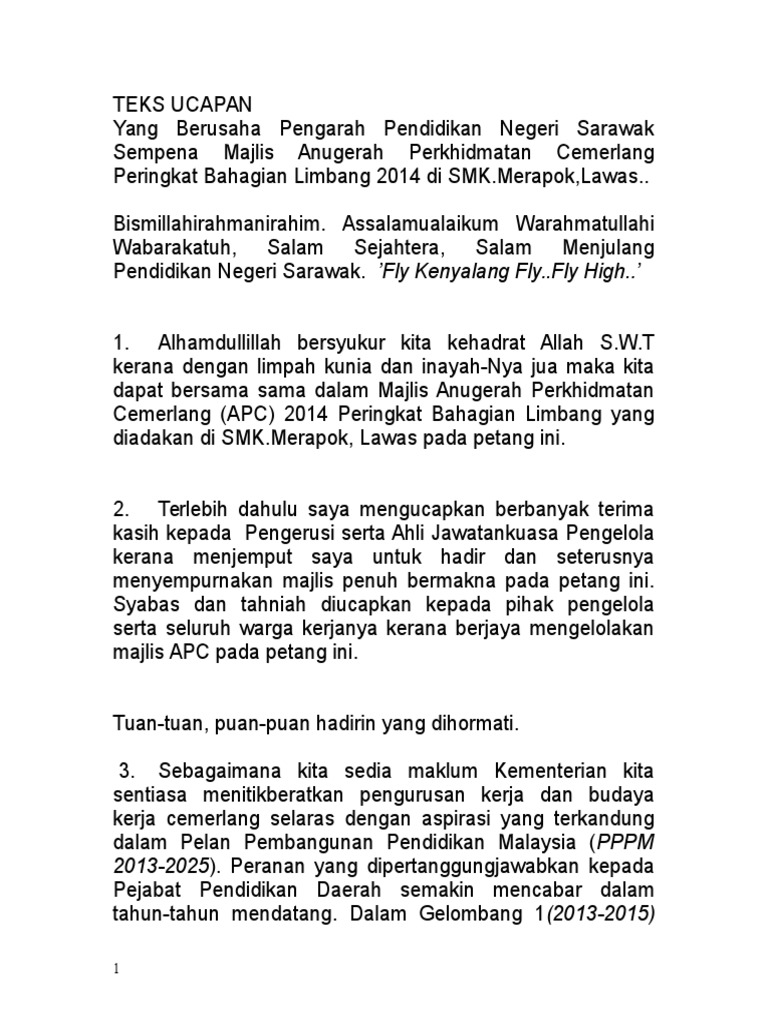 Teks Ucapan Majlis Anugerah Perkhidmatan Cemerlang Apc Pdf Document