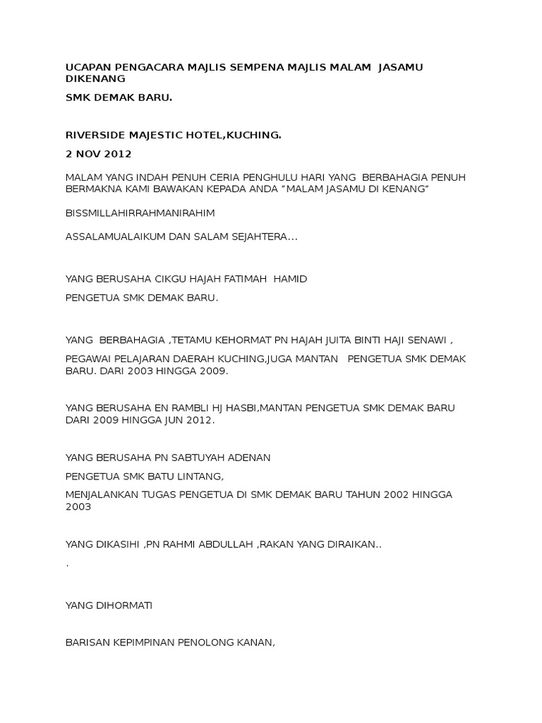 Skrip Mc Majlis Jasamu Dikenang