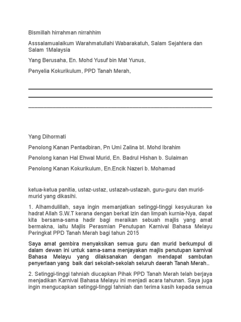 Teks Ucapan Perasmian Kem Bahasa Inggeris Sekolah Docx
