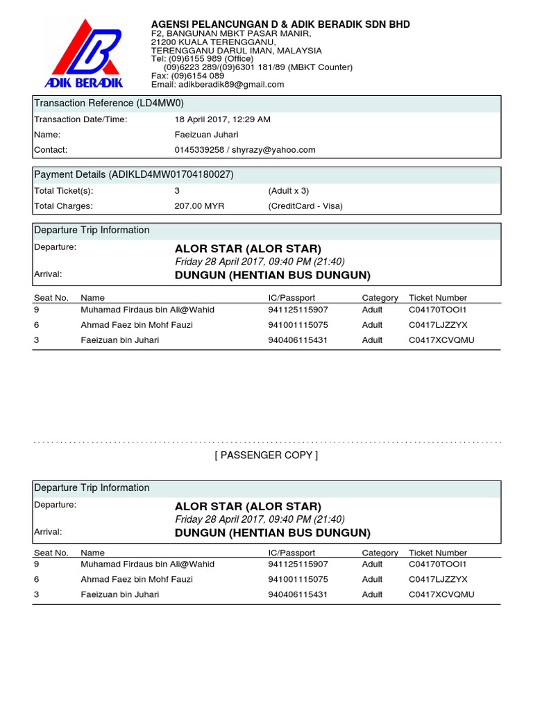 Tiket Bas Online Adik Beradik Express Contact Number Semakan My