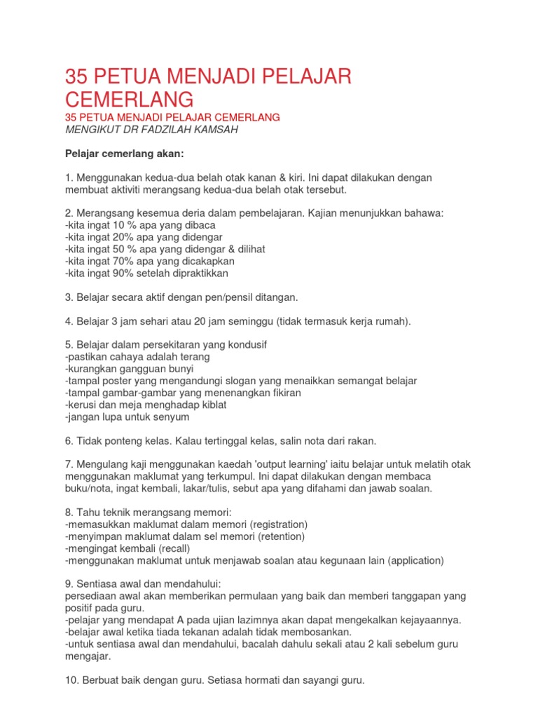 35 Petua Menjadi Pelajar Cemerlang