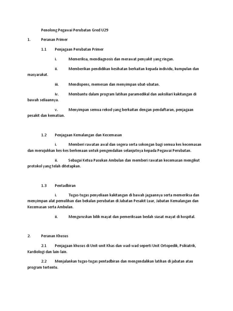 U 29 Senarai Tugas Dan Tanggungjawab Ppp Psikiatri U29 Doc