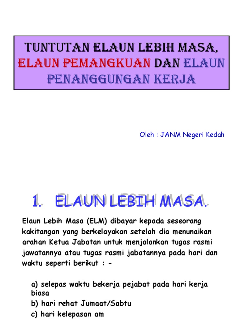 Ppt Tuntutan Elaun Lebih Masa Elaun Pemangkuan Dan Elaun Penanggungan Kerja Powerpoint Presentation Id 837747